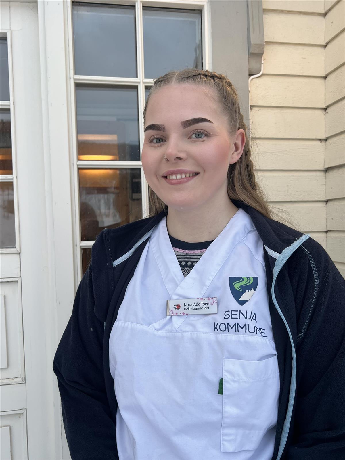 – Jeg studerer til å bli vernepleier – og det er veldig spennende og givende, sier Mariell Theodorsen, som er helsefagarbeider i hjemmesykepleien i Vangsvik.
