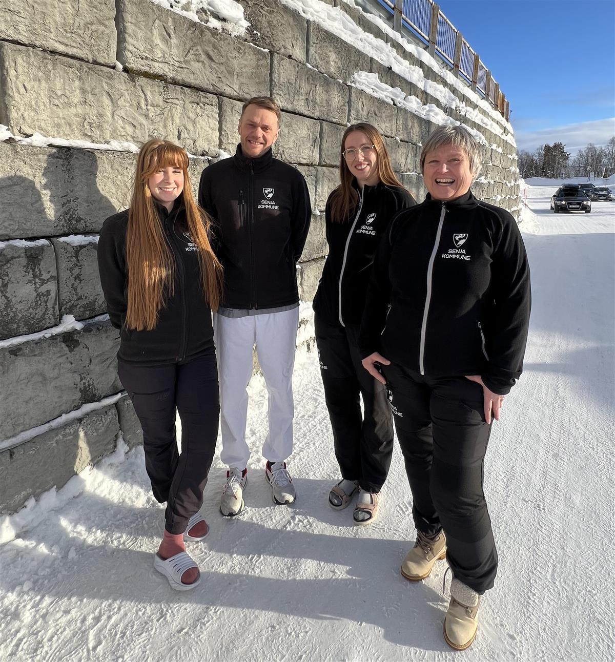 Pasientsentrert helsetjenesteteam i Midt-Troms, fv. Sigrid Benjaminsen, sykepleier, Marius Tønnesen, fysioterapeut, Anja Karolius, ergoterapeut og Grete Fagerli, koordinator og fysioterapeut.Fakta om hvordan PSHT jobber